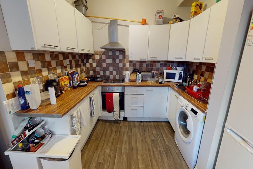 A fantastic large 4 double bedroom house in anamazing central location, with all the amenities of Headingley only a stone's throw away! There is a large living room with wood laminate flooring and leather sofas, a contemporary fitted kitchen and two brand new modern bathroom. All the bedrooms are a good size, well decorated and have stunning furniture. There are 2 four-bedroom flats in this property so perfect for a group of 1 .