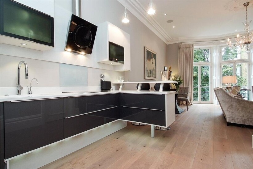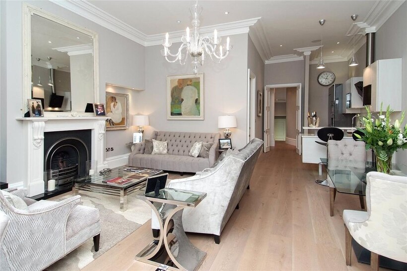Set within a grand period building, the flat boasts extraordinary 4-metre-high ceilings in the reception room, flooding the space with natural light and enhancing its sense of grandeur. Every detail of the property reflects the highest possible specifications, including underfloor heating throughout, bespoke finishes, and a luxurious TV integrated into the bath—perfect for indulgent relaxation.