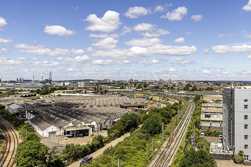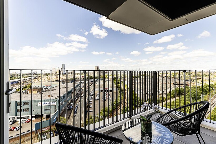 Step out onto the balcony and take in the stunning view of London, with outdoor furniture provided.