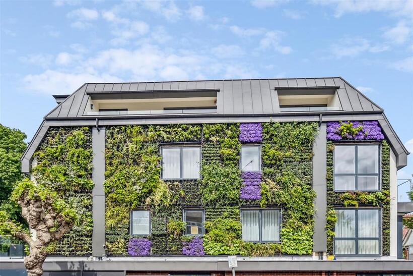 Luxley House boasts net zero carbon credentials, 65m2 green 'living wall', solar panels & electric car charging points.