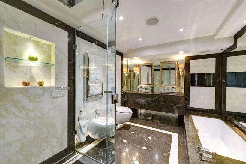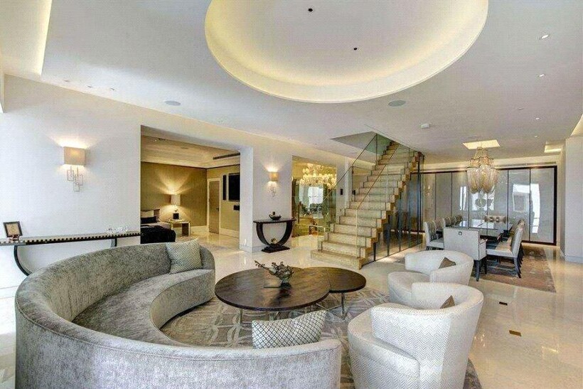 Over the lower floors are three further double bedrooms, with dressing areas and each with en-suite bathrooms, family reception area, large TV room, further open plan reception and dining area, luxury fully integrated kitchen with central isle and serving area, separate "wet kitchen" for the preparation of aromatic dishes, private cinema, large bar and a quite exceptional private spa featuring a good sized swimming pool, steam room, sauna and massage room. Underfloor heating and air-conditioning throughout. Inter-room entertainment system