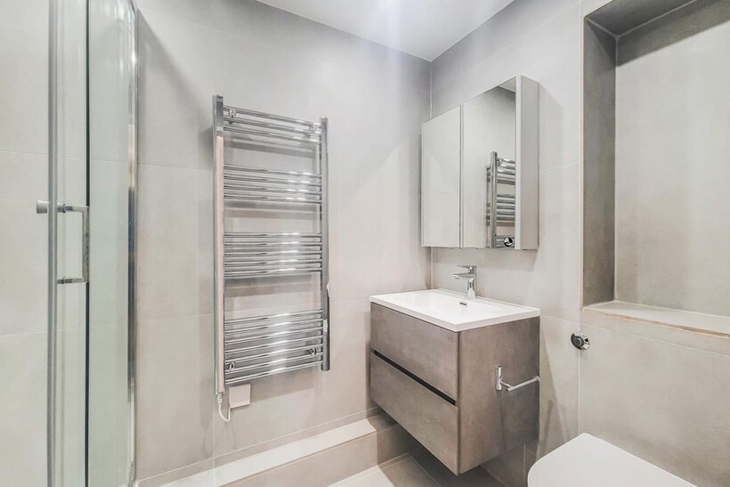 Two modern bathrooms, including a sleek en-suite shower room to the main bedroom
