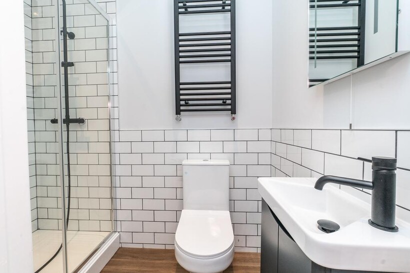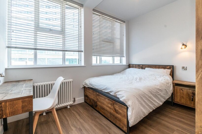 Bedrooms/ Ensuite - Each of the 5 double bedrooms are furnished with a double bed, wall mounted lamps, wardrobe, desk, chair, full length mirror and a wall mounted smart TV. The modern finish with wooden flooring and crisp white paint creates the most stunning space. With a connecting private ensuite shower room that benefits from a sink, WC, heated towel rail and shower these bedrooms are ideal for students.