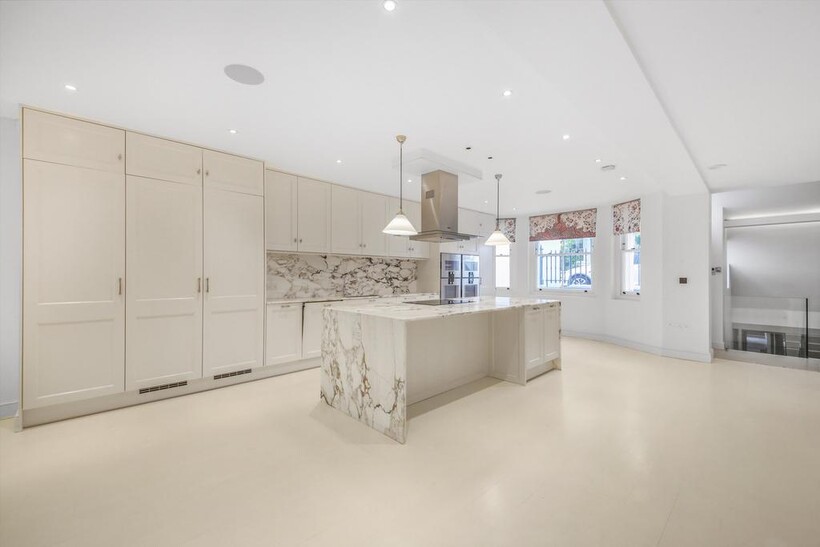 An exquisite family residence situated on one of the highly sought-after 'Cherry Blossom' roads near Kensington Palace. This elegant period home has been meticulously renovated to seamlessly blend its magnificent original features with contemporary finishes throughout.Offering exceptional space for both everyday living and entertaining, the property is flooded with natural light and showcases impressively high ceilings. A grand, double-fronted formal reception room occupies the raised ground floor, while the garden level hosts a striking open-plan kitchen, dining, and living area that opens directly onto a generous patio garden — ideal for alfresco dining and family gatherings.