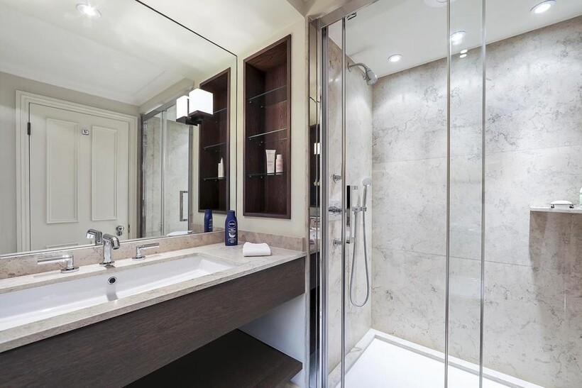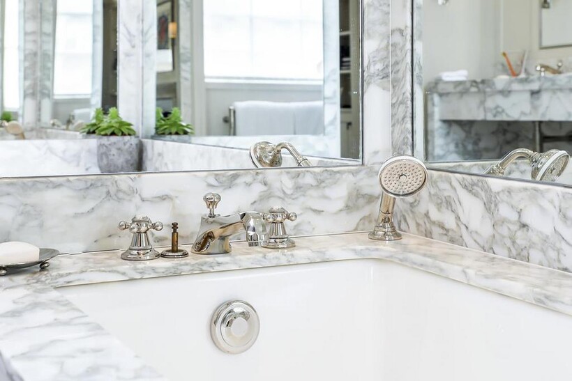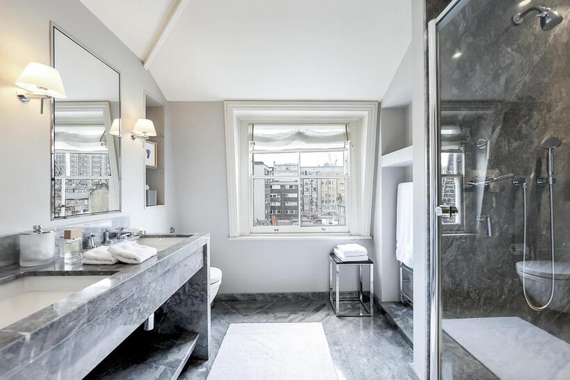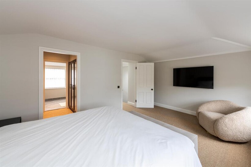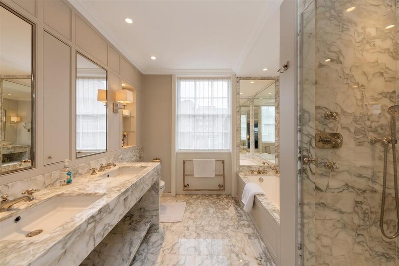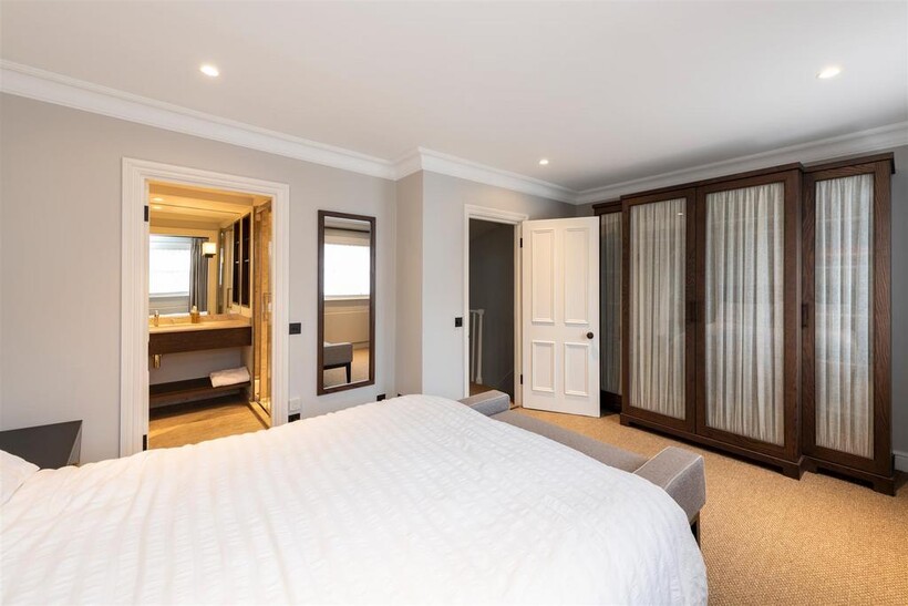 The Master bedroom suite is a luxurious space and occupies the entire second floor. Boasting an en suite bathroom with marble flooring, a walk-in shower, separate bathtub and dual sinks every need is catered for. Bedrooms two and three are on the third floor, one with en suite shower room and the other with an adjacent guest bathroom. To the top floor, bedroom four has a walk-in wardrobe, en suite shower and is the largest suite within of the guest accommodation.