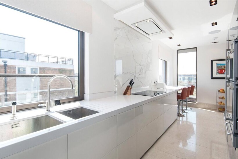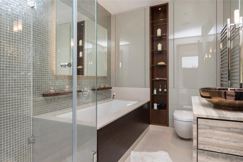 The master bedroom suite and two further bedroom suites each host access to a private terrace. The attention to detail and extremely high specification of interiors create one of London's finest penthouses.