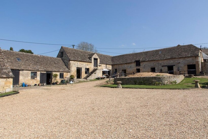 The impressive traditional Cotswold stone courtyard comprises an open fronted 5 bay car port, secure double garage and stores, studio office space, gym, and general storage. It also offers 9 well sized equestrian stables, feed room, and secure tack room.