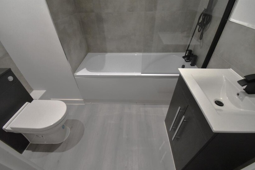 BATHROOM - The bathroom presents a stylish three piece suite with bath over shower.