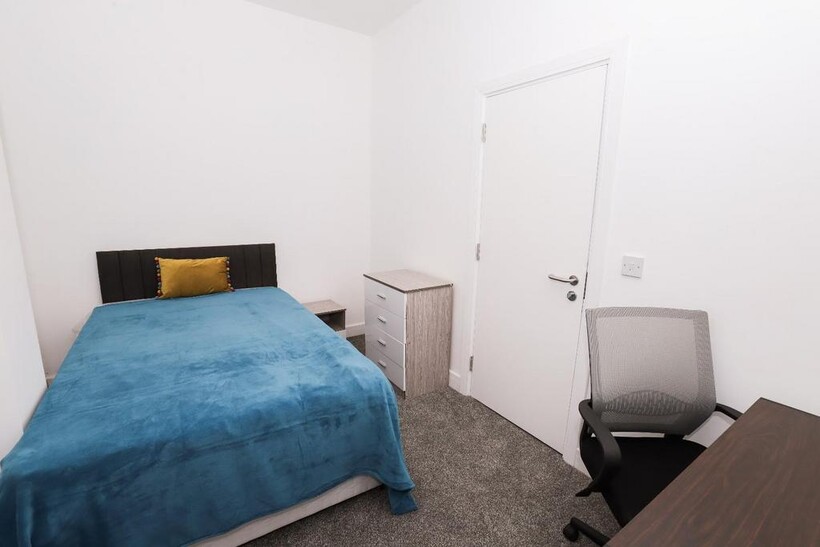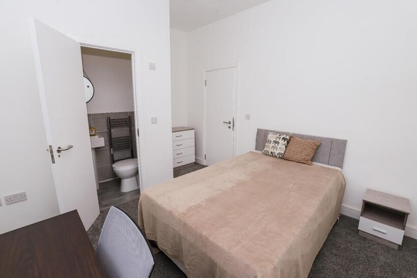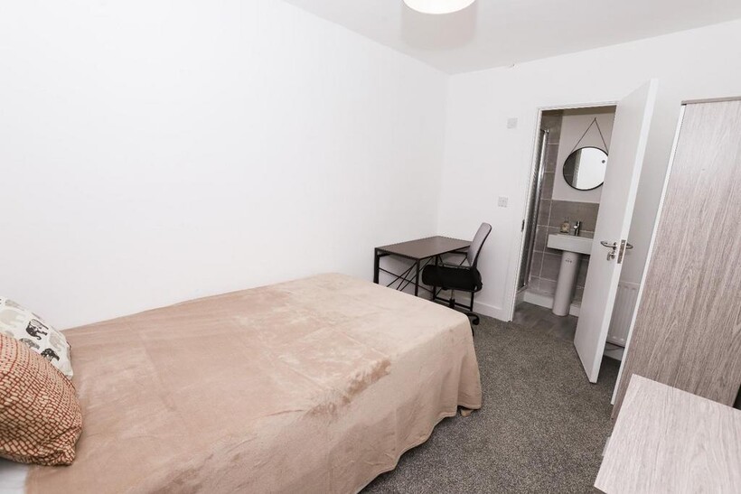 All rooms are fully furnished and newly carpeted, including the communal areas. Our units are provided with a television in the communal living area, pots, pans, dinner service and cutlery. The idea is that you arrive with your bag, towels and bedding, everything else is provided. The rooms include, double bed, wardrobe, desk, chair, bedside cabinet and chest of drawers.