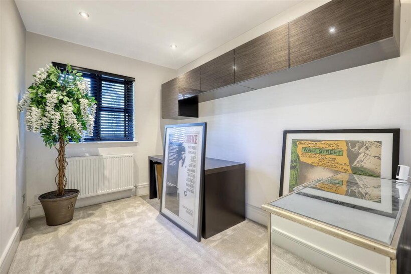 Step inside to discover a harmonious blend of elegant charm and contemporary sophistication. The ground floor boasts a well appointed layout, comprising two inviting reception rooms, a chic kitchen diner, and two downstairs WC's. The bright and airy living room offers access to the meticulously landscaped garden, creating a seamless flow between indoor and outdoor living spaces. The stylish kitchen is a culinary delight, featuring sleek modern cabinetry, integrated appliances, and an elegant island. Bi-fold doors open up to reveal a picturesque view of the garden, flooding the space with natural light.