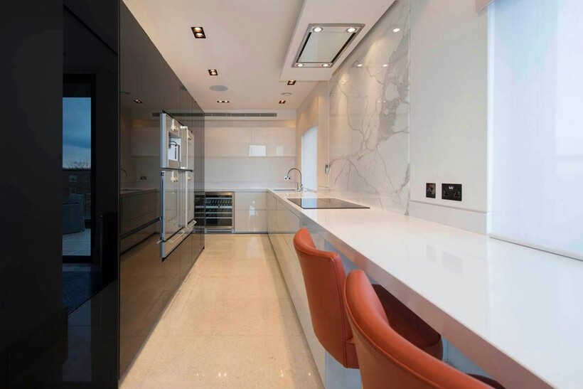 We are pleased to offer this spectacular interior designed 4 bedroom split level penthouse apartment which is located inside a secure portered building with gated off street parking. This bespoke property benefits from a spacious master bedroom with built in wardrobes and a luxurious en-suite bathroom with oval bath tub and Aqua vision tv, a further three double bedrooms all with en-suite bathrooms, a fully fitted kitchen with Gaggenau appliances, utility room, formal dining room and a second larger reception room with a private terrace overlooking London.