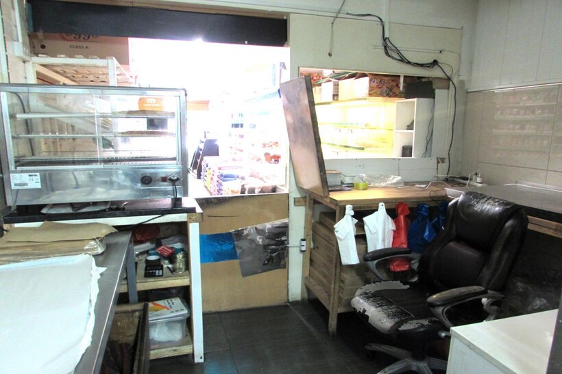Currently, the front section operates as a grocery shop, while the rear serves as a bakery. The premises include a fully equipped kitchen, rear storage area, and a W.C.