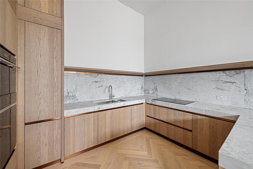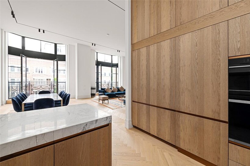 Located within the prestigious Whiteley development, this exceptional second-floor residence offers an expansive 3,128 square feet of luxurious living space, complemented by soaring high ceilings and finished to the highest standard throughout.The apartment features a stunning open plan reception and dining area, seamlessly connected to a large kitchen fitted with top-of-the-line Gaggenau appliances. A separate utility room with integrated wine fridges adds further convenience and sophistication to this apartment.