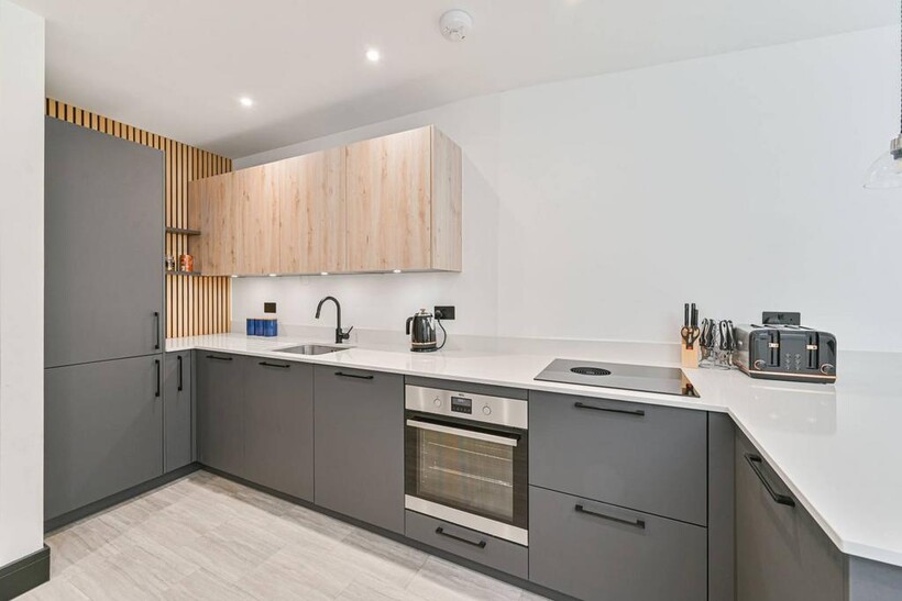 Open-plan kitchen with modern fittings and finish