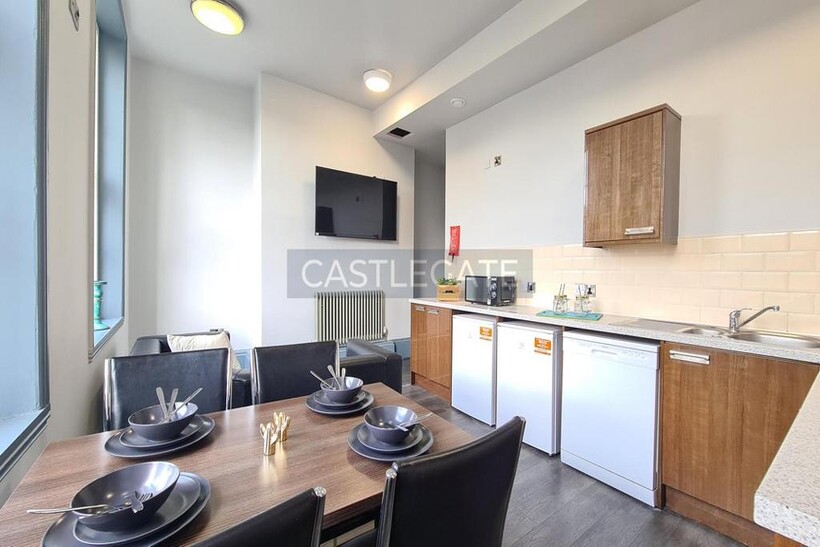All rooms have a wardrobe, storage, desk and chair unit along with a double bed and TV. Bills for electric, gas, water and Wifi are all included. The apartments have secure key code entry and its own intercom entry system for visitors.