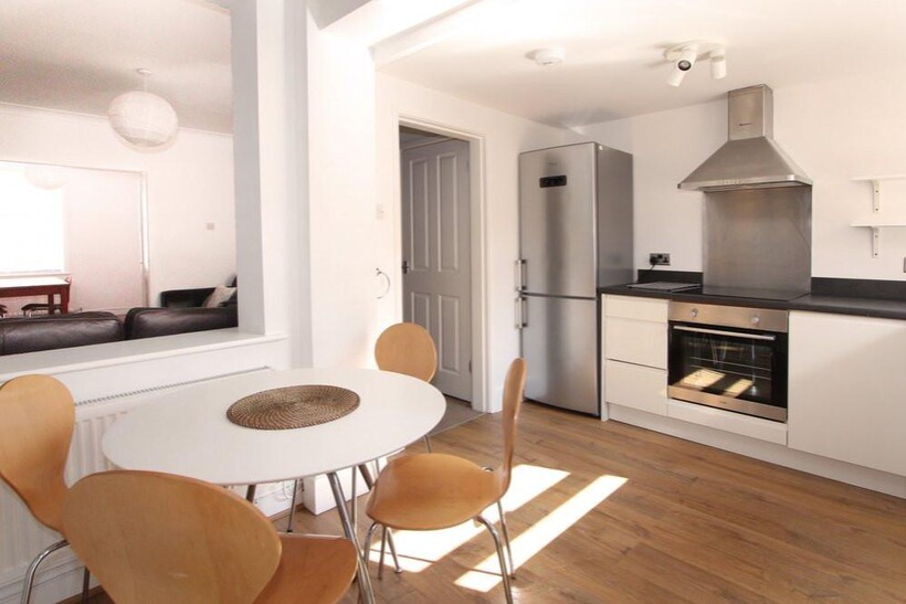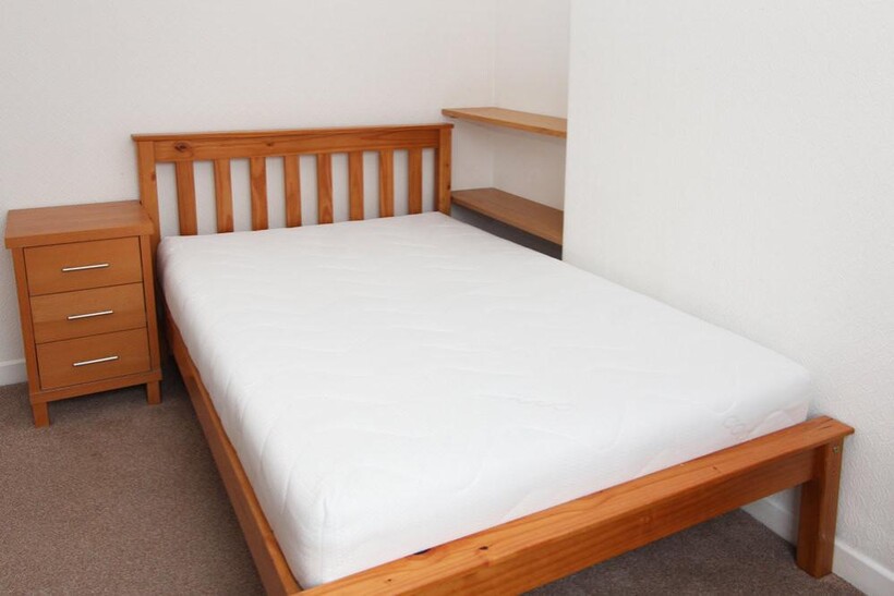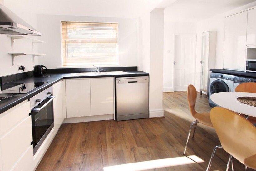 The kitchen, with white gloss units, includes all appliances and is in showroom condition. Not much for a student to bring to the property.