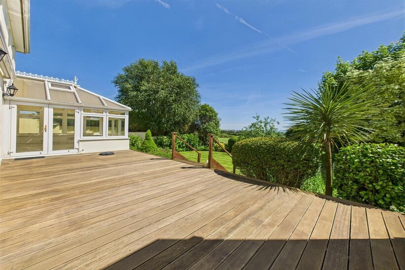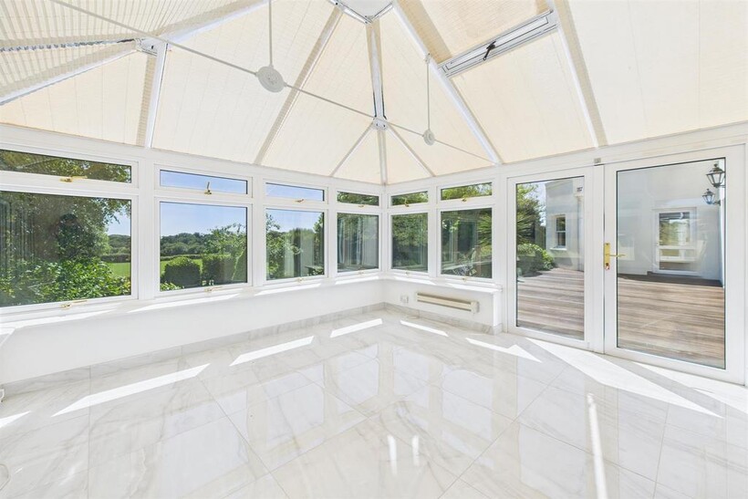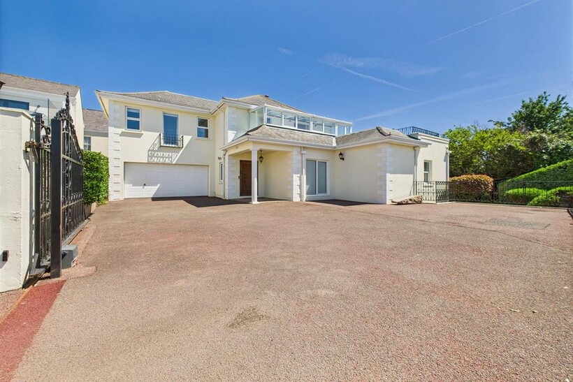 QUALIFIED. This beautiful 5 bedroom property is situated in rural St Helier, down a private lane and accessed through secured gates. The property comprises; large entrance hall with an impressive staircase, spacious living room, fully fitted eat-in kitchen, conservatory, study, large utility room and integral double garage. To the first floor we have 4 bedroom suites and a further smaller bedroom, the master bedroom has a private sun room and terrace. Outside the property there is a beautiful south-facing garden and patio with rural and distant sea views. Parking for 8 cars. REN035