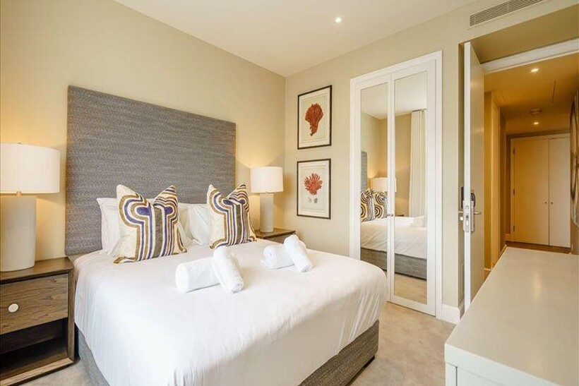 A beautifully interior-designed two-bedroom apartment in a prestigious waterfront estate.Apartment features an open-plan reception with dining space, wooden floors, floor-to-ceiling windows, with stunning skyline views. The separate kitchen is fully equipped with modern appliances and LED lighting. The bedrooms offer king-size beds, with mirrored, fitted wardrobes.Residents benefit from modern living next to the River Thame and free access to on-site amenities; Games Room, Cinema Room, Residents' Lounge and Outside Terrace.Excellent Zone 2 transport links (DLR, Jubilee, Elizabeth Line), riverside walks, Thames Clipper access, and on-site support including a building manager, maintenance team, and 24-hour emergency helpline.