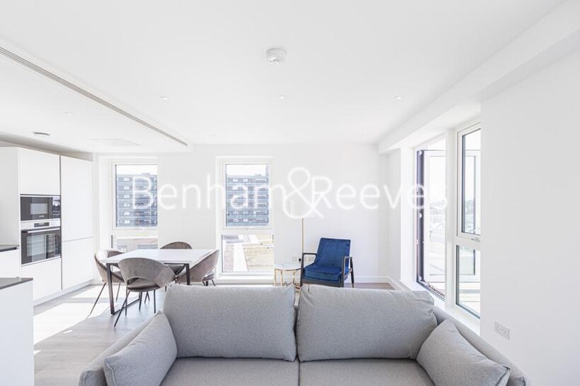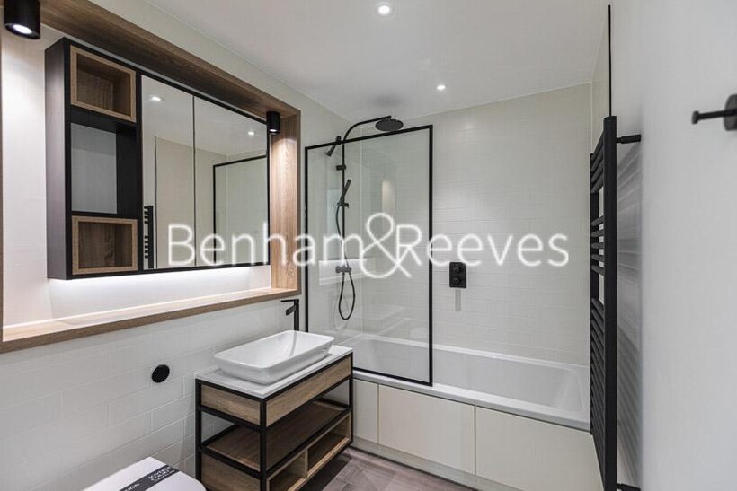 A spacious apartment set on the 5th floor of Rothesay House, situated within the prestigious Sovereign Court development in the heart of Hammersmith. Offered contemporarily furnished and consiststing of an open plan reception room overlooking the beautiful Georgian houses, with floor-to-ceiling windows providing plenty of natural light, dining space, and a fully fitted modern kitchen with marble finish worktop and well-known brand of integrated appliances. There is a generous double main bedroom with built-in storage space and contemporary en-suite double walk-in shower room, a second compact double bedroom, and a separate large family bathroom.