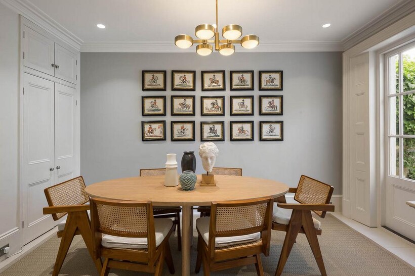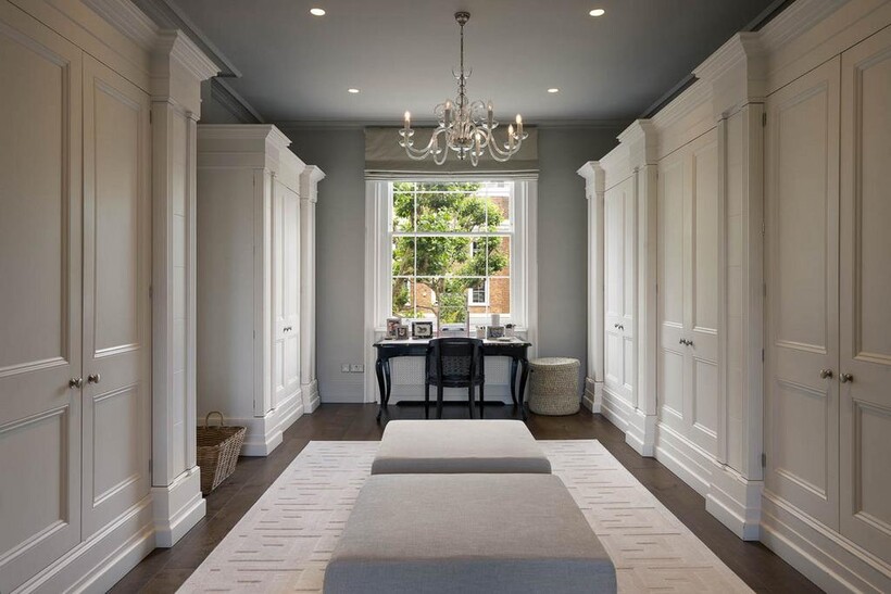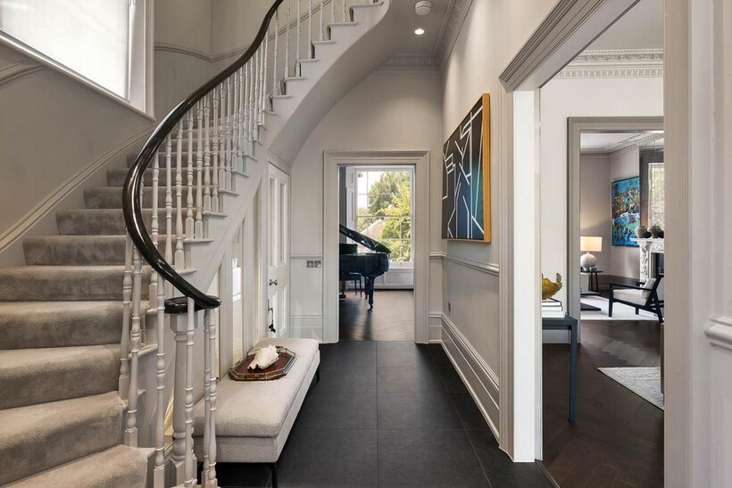 A six-bedroom Victorian house spanning 5,126 sq ft, situated on Hamilton Terrace in St John’s Wood. The property offers extensive family and entertaining space, a 92 ft landscaped garden, gated off-street parking for two large cars and a converted garage offering gym or workspace use.Internally, the house is laid out across multiple levels and has been carefully interior designed to suit modern family living. The ground and lower floors comprise generous reception and dining spaces, while the upper levels feature a principal suite with dressing room and ensuite, four further bedrooms and a sixth bedroom suitable for staff or guests. Additional spaces include a study, cloakroom and conservatory.
