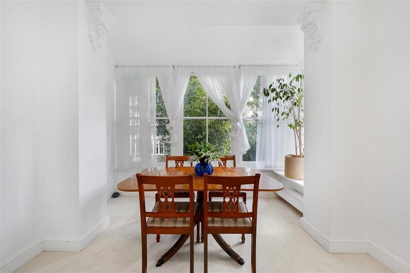 This stylish one-bedroom split-level flat is set in the popular Nevern Square in Kensington, offering charm, space, and a great location.Located on the first floor, the flat is filled with natural light and has a smart layout. As you walk in, there’s a bright hallway that takes you to a modern kitchen with high ceilings, a big window, and space for dining. The living room is at the end of the hallway and feels open and airy, with another dining area by the window, built-in shelves, a sofa bed, and impressive high ceilings.