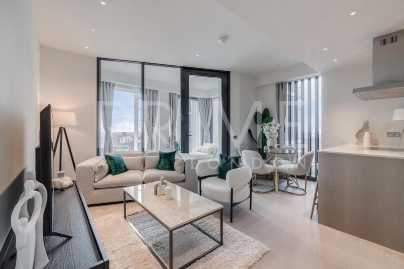 With expansive views over London, this exceptional twenty-seventh floor fully furnished two bedroom premium apartment of 829 sq ft (77.0 sqm), is available for through Prime London. This contemporary apartment has been thoughtfully designed to maximise the use of space and offers great views of the surrounding area. It is spacious and bright, with floor to ceiling windows, filling the apartment with natural light. The kitchen and bathrooms have been finished to the highest standards, and the style of the rest of the finishes is refined throughout, making the apartment a welcome retreat.