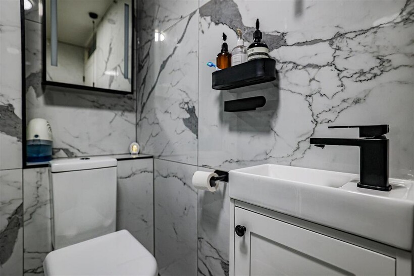 The apartment features two bedrooms, ensuring ample room for rest and personal space. The contemporary three-piece bathroom is designed with modern fixtures, offering a refreshing retreat.