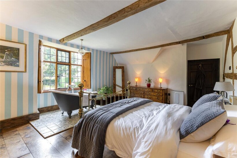 The house boasts six generous bedrooms, and three bathrooms set out over the top two floors of the property along with a study/wellness room. On the ground floor you have a multiple of rooms including a bespoke kitchen, dining room with those beautiful flag stones, large inglenook fire and beam work making it one of the most impressive rooms in the house. This leads to a modern sitting room with a large open fireplace, a modern morning room and drawing room with the exquisite oak panelling, the windows in this room are just charming and a real feature of the house. Also on this floor is a handy boot room, utility, and boiler room.