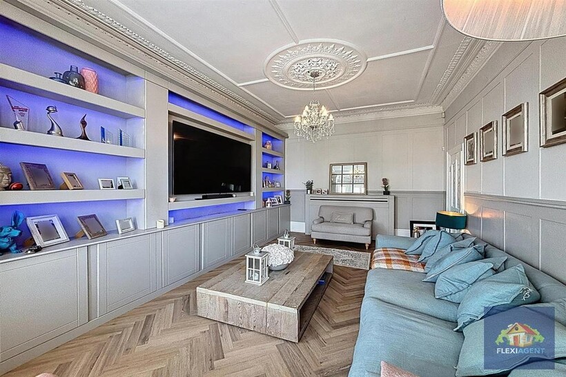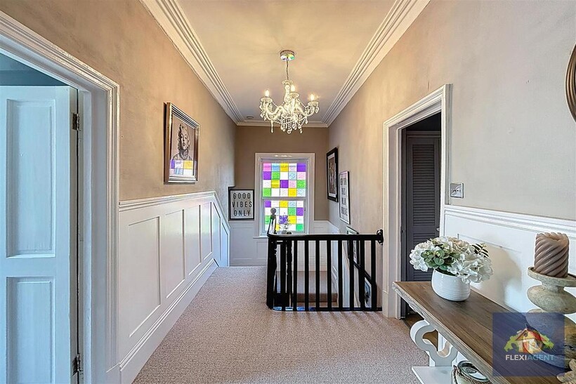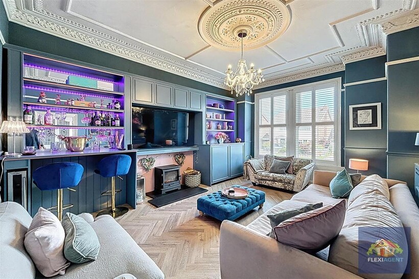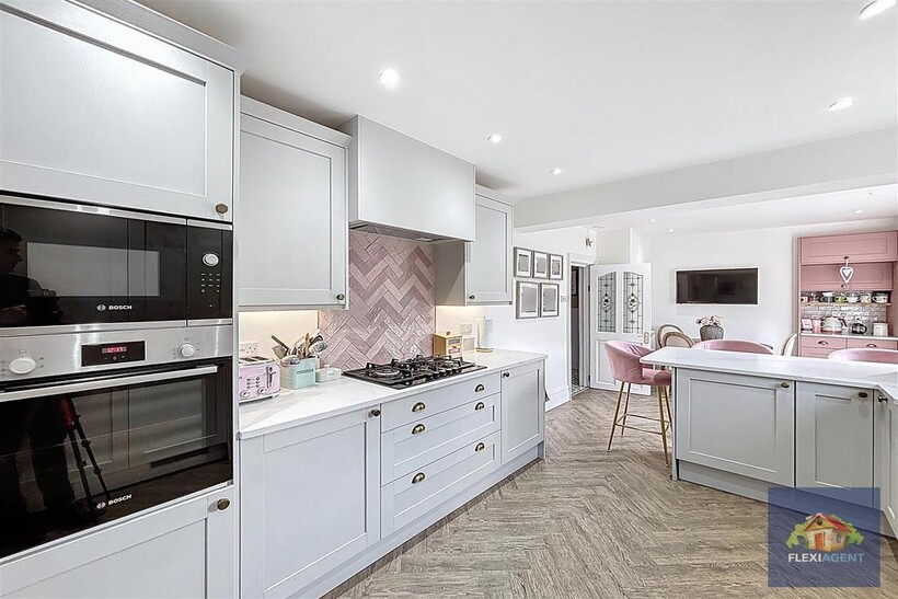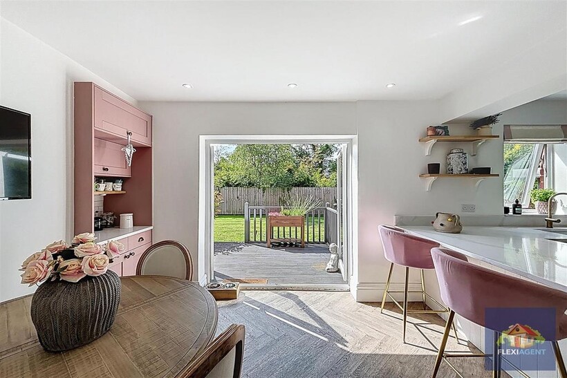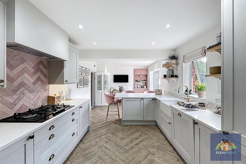 This substantial family home offers generous and versatile living accommodation set over three floors. The ground floor comprises a welcoming entrance hallway, two spacious front lounges—one currently used as a bar/lounge area, a downstairs WC and a versatile home office or dining room. To the rear is a large, modern kitchen fitted with high-specification appliances and bi-folding doors that open onto a sun-catching decked area, ideal for entertaining.