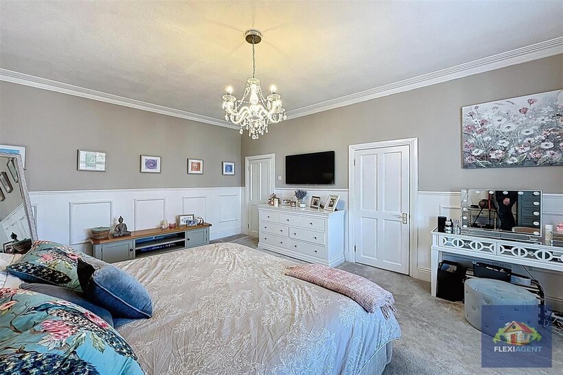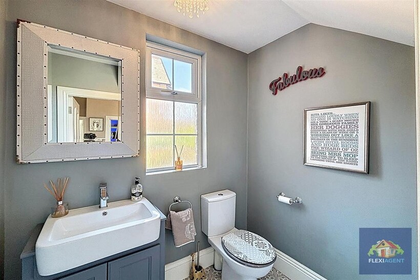 The first floor hosts four generously sized bedrooms, two of which benefit from private en-suite bathrooms. A stylish three-piece family bathroom also features a cleverly designed laundry room for added practicality. A separate utility room completes the ground floor layout.