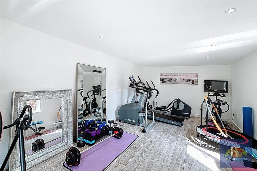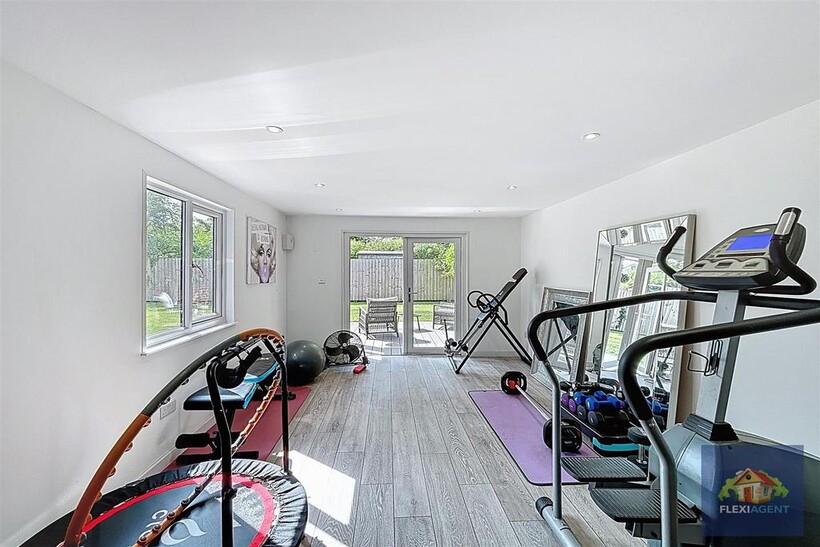 Externally, the property boasts driveway parking for several vehicles and also benefits from an EV Charging port. The rear offers a private, sun-filled garden complete with a decked seating area, a home gym, and ample space for outdoor enjoyment.