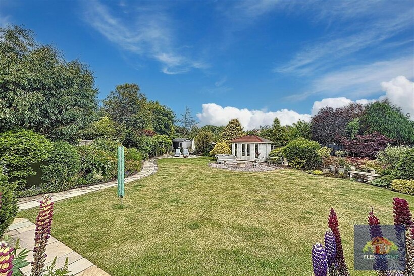 Expansive rear garden with summer house - great for entertaining