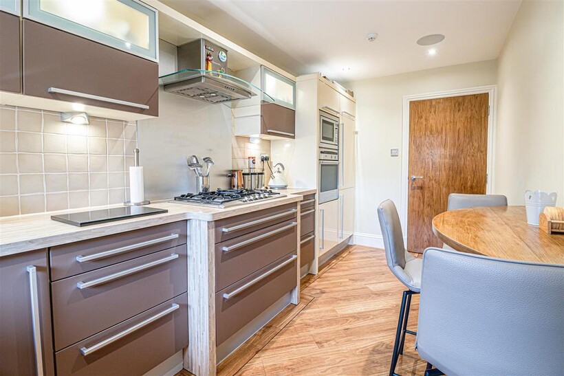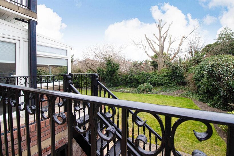 The accommodation comprises a communal entrance hallway leading to a private entrance hall. There is a spacious lounge with French doors opening into a sunroom, which enjoys views over the well-maintained communal gardens. The contemporary kitchen is fitted with integrated appliances and a breakfast bar. There are three double bedrooms. The master bedroom includes a charming bay window and a modern en-suite shower room. The other two bedrooms benefit from built-in wardrobes. A sleek four-piece white bathroom suite completes the interior.