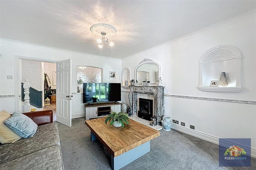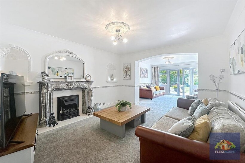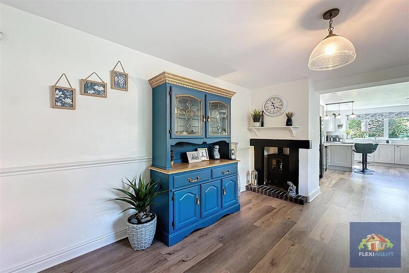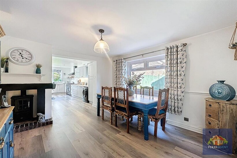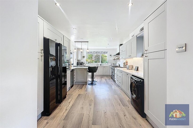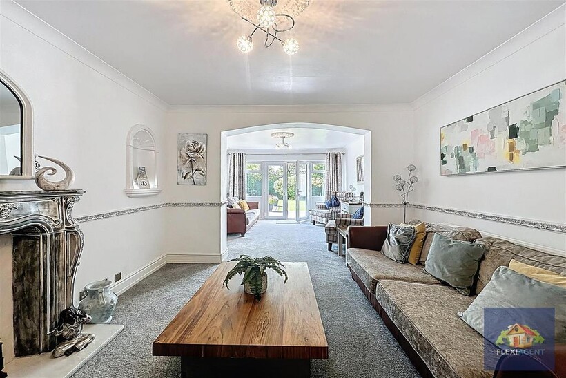 The ground floor of the property features a grand entrance hallway, a spacious lounge with a bay window that fills the room with natural light, and a second open-plan lounge with direct access to the rear garden. A generous open-plan kitchen/diner is the heart of the home, complete with a feature log burner, high-end integrated appliances, a breakfast bar, and ample dining space. A convenient downstairs WC completes this level.