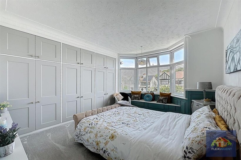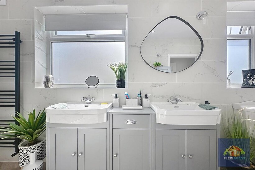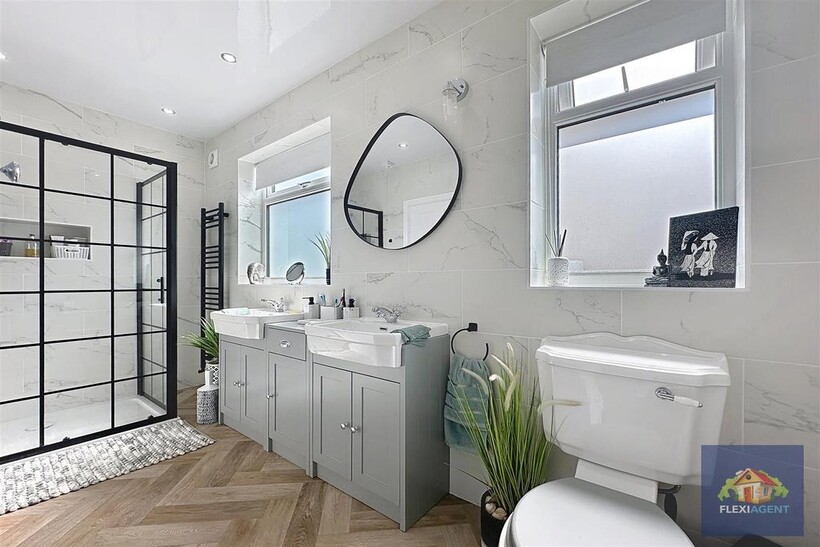 Upstairs, the property offers four double bedrooms, each tastefully decorated and offering ample storage. The master bedroom benefits from its own Jack and Jill en suite shower room, while the modern family bathroom features his and hers sinks and high-quality fittings.