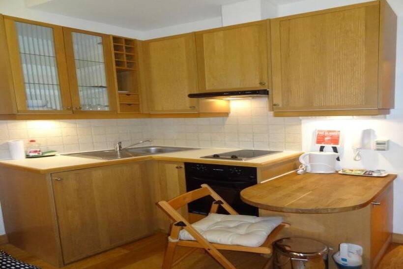 Situated on the second floor, this self-contained studio flat boasts beautiful garden views, providing a tranquil retreat from the bustling city life. The living area is thoughtfully designed to optimize the space, featuring a comfortable bed, a wardrobe for storage, and a dining table where you can enjoy meals or catch up on work.