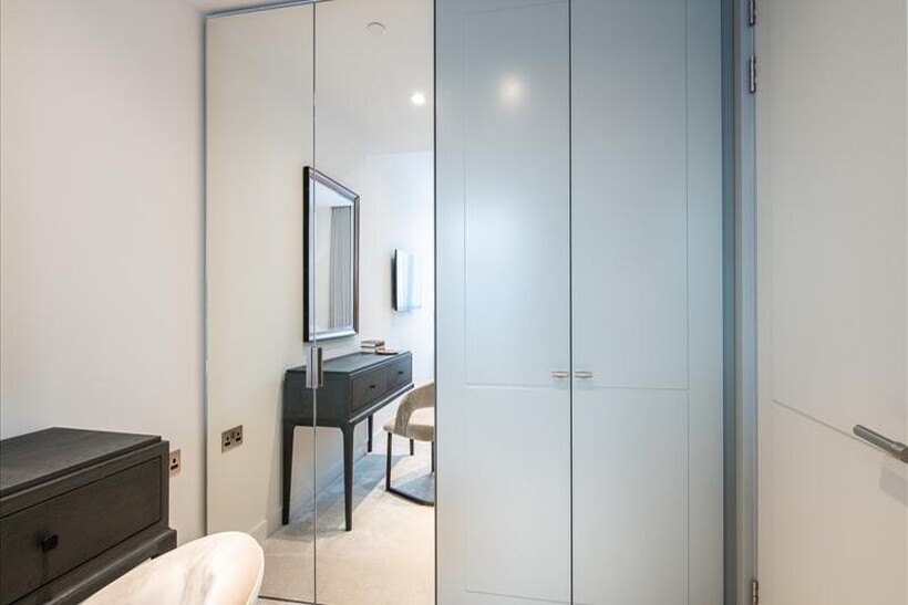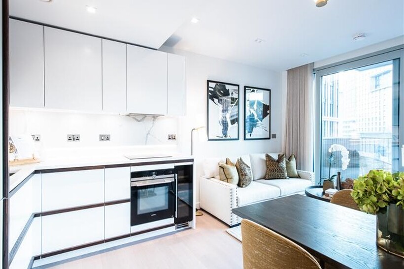 A luxurious interior designed one-bedroom 3rd floor apartment set over 575 SqFt comprising a large open-plan reception room leading onto a private balcony. The fully integrated kitchen with appliances from Siemens and Miele including oven and induction hob, large fridge freezer and dishwasher and wine chiller all inset into composite stone work tops. The apartment has a double bedroom and ensuite bathroom. The whole apartment also benefits from comfort cooling.This apartment comes complete with large Samsung Smart TVs and Samsung sound bar and is offered with full use of the onsite facilities including Gym, pool, residence lounge area, privet dining room, conference facilities, 24-hour concierge and Cinema room. The apartment is ready to move into with the internet already connected.