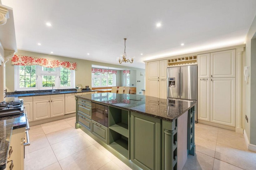 Six-Bedroom Detached House on 1.6 Acres Near St. George's Hill EstateThis six-bedroom detached house sits on approximately 1.6 acres adjacent to the St. George's Hill estate. The property offers over 6,800 square feet of living space across two floors plus a self-contained annex.The house features a grand entrance hall with galleried landing and central staircase. The newly fitted kitchen contains fitted units, a central island, breakfast bar, and built-in dining area. The kitchen opens directly onto the patio and pool area through double doors, with the adjoining family room creating an open-plan living space.Reception rooms comprise a 36-foot formal lounge with bar area, a separate dining room, and a study with oak flooring. A wine store and cloakroom complete the ground floor accommodation, creating a sophisticated living environment.The master bedroom suite contains a dressing room, an oversized en-suite bathroom, and a private balcony overlooking the rear garden. Four additional bedrooms are located upstairs, with two featuring en-suite shower rooms. A family bathroom serves the remaining bedrooms, ensuring comfortable accommodation for all residents.Above the garage sits a self-contained annex with a kitchenette, bathroom, and large reception room currently used as a gym. The annex provides separate living accommodation, offering flexibility for guests or independent living.The westerly-facing gardens are mainly lawn with mature planting and trees. A paved patio area surrounds the swimming pool, measuring 20 feet by 40 feet. The pool features a pool house for convenience, while mature silver birch trees border the property to create natural privacy.Electric gates provide access to a circular driveway with parking for several cars. The property offers quadruple garages for secure vehicle storage.The house boasts underfloor heating and integrated speaker system on the ground floor. Double-glazed hardwood windows with sound-proofing are fitted throughout to ensure quiet living. High-speed internet wiring supports speeds up to 900 megabits per minute, while the property has been recently redecorated with new carpets and flooring.Location The house is located on a private road near Weybridge and Cobham town centres. Weybridge mainline station provides rail links to London. The A3 and M25 orbital road offers motorway access. Local schools feature Felton Fleet and Notre Dame within walking distance, with ACS Cobham also nearby.Quote JD0696 for all enquiries.