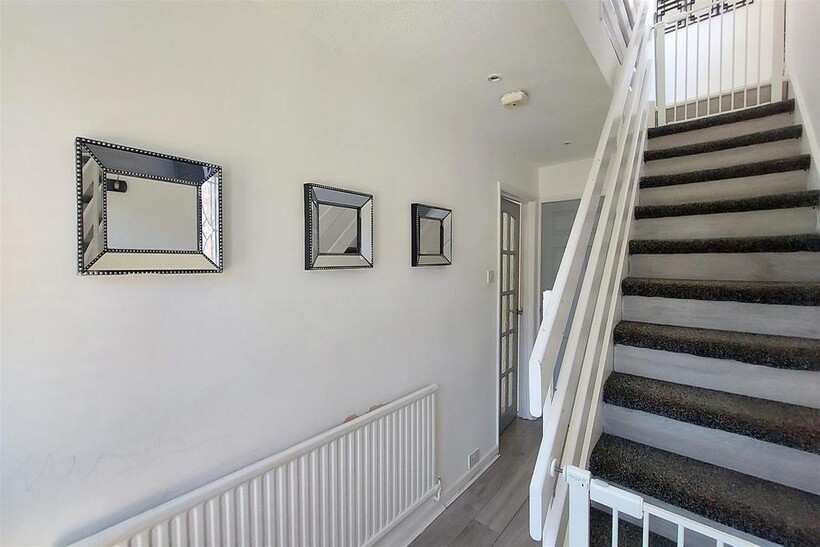 Reception Hallway - Continuation of laminate flooring with neutrally decorated walls. Radiator, telephone socket,spot lights, smoke alarm and double glazed uPVC door with obscured glazing and brass handles. Under stairs storage cupboard with lighting, mains fuse box and gas meter.