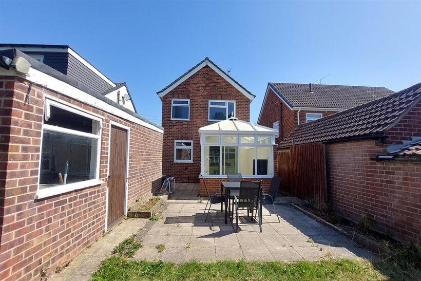 Outside Rear - A large enclosed rear garden, mainly laid to lawn with slabbed patio area access to front from both sides of the property.
