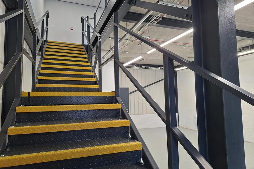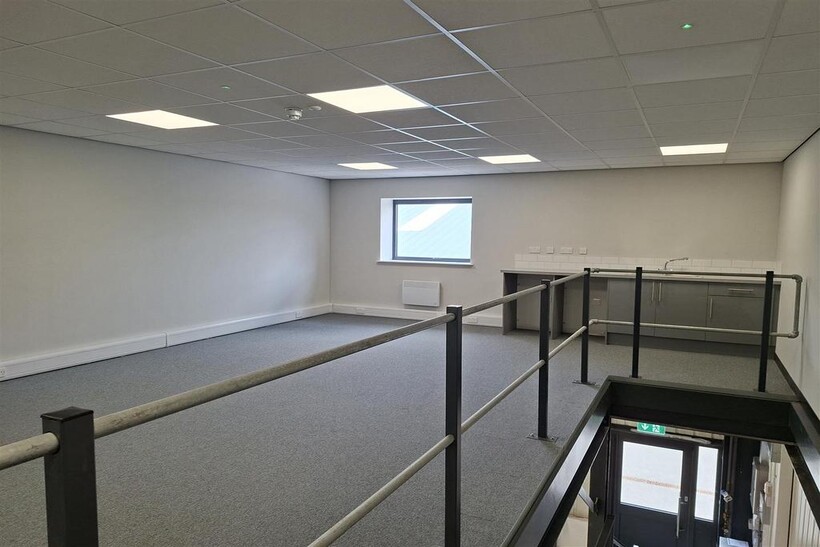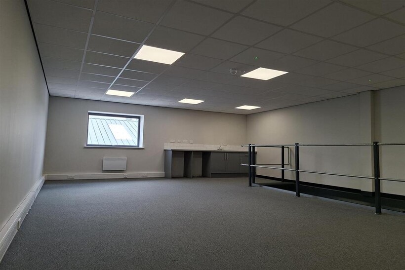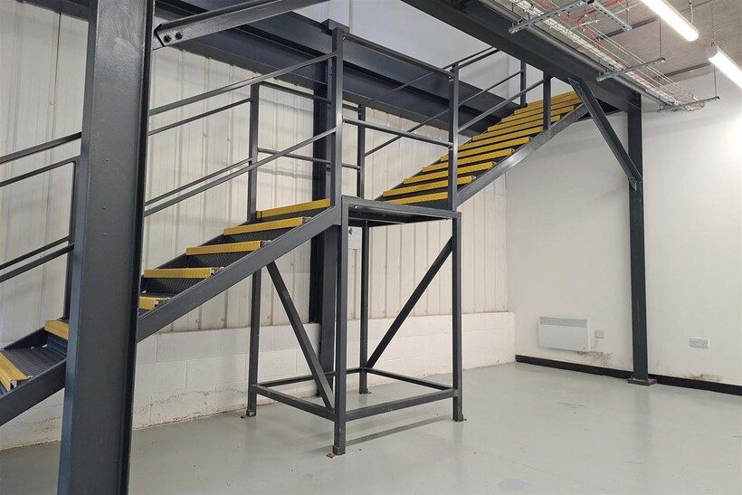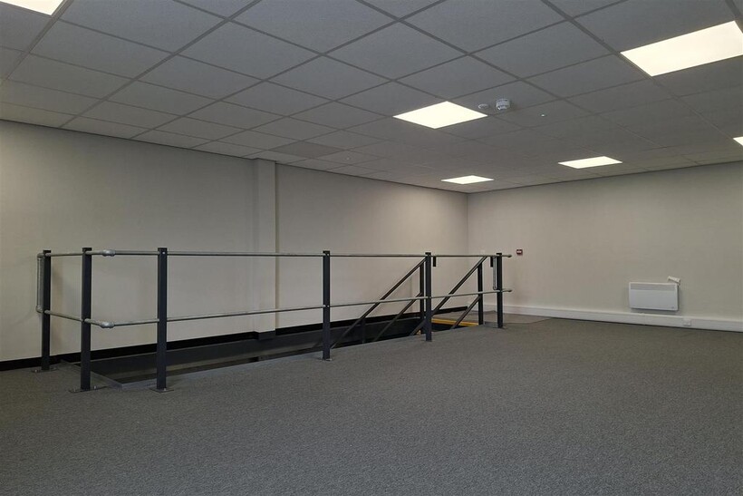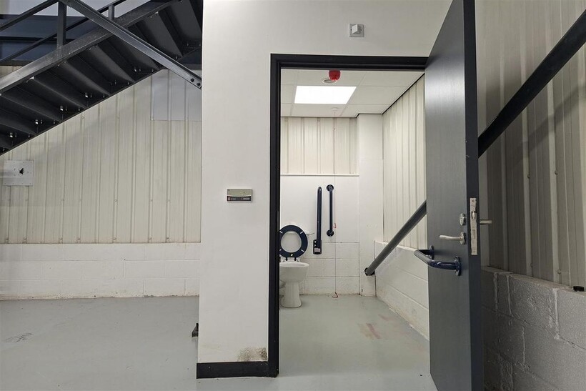 Internally the ground floor offers painted concrete flooring, 3 phase electrics, modern programmable electric panel heating, broadband and LED lighting, Fire Alarm system and W.C. with disabled access, hot water heater and emergency assist alarm. Access via a personnel door, with 10ft x 9ft electric roller shutter door to the front of the unit. Minimum eaves height to mezzanine : 10.26 ft.