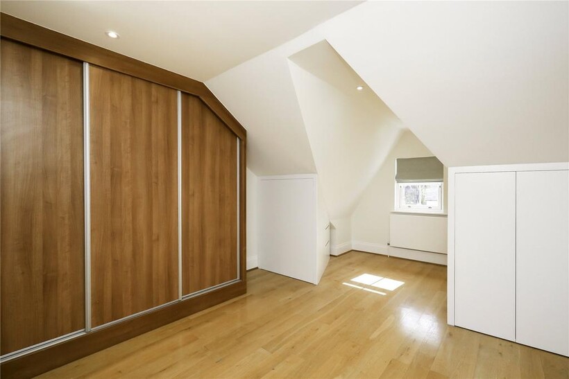 Upstairs, the accommodation is flexible. It currently includes a formal reception room at the rear, which opens onto a small balcony overlooking the gardens. There are two further bedrooms on this floor, one of which is currently used as a study.
