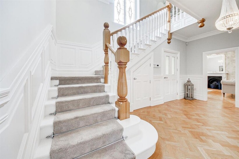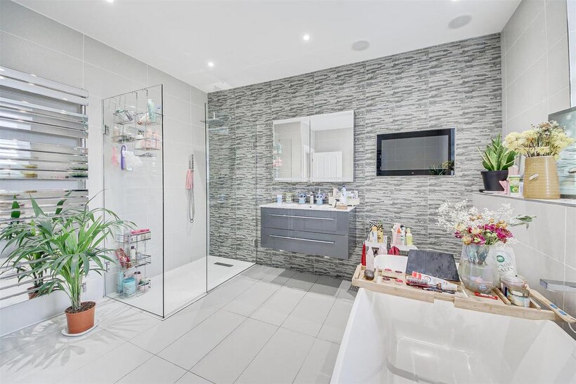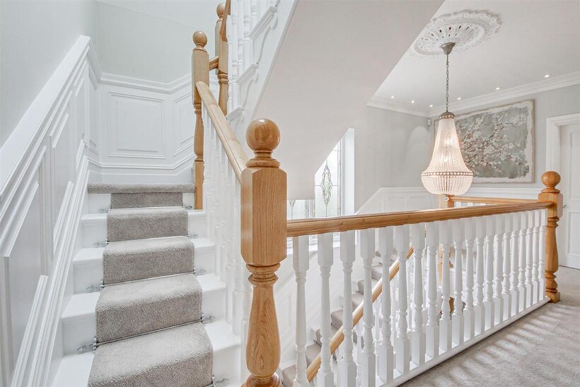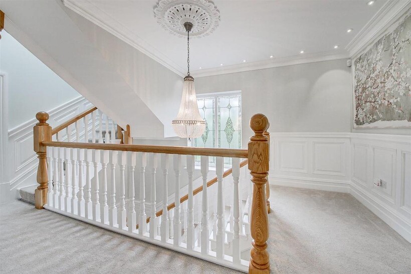 On the first floor, there is a generous landing area leading to five double bedrooms, two of which benefit from en-suite bathrooms. A modern four-piece family bathroom completes this level.
