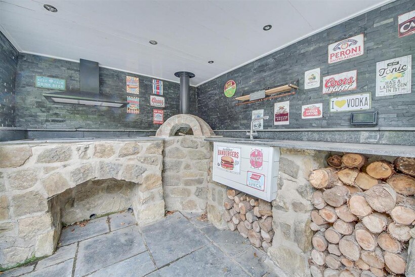 -An outdoor kitchen and bar area, complete with a brick-built pizza oven and BBQ