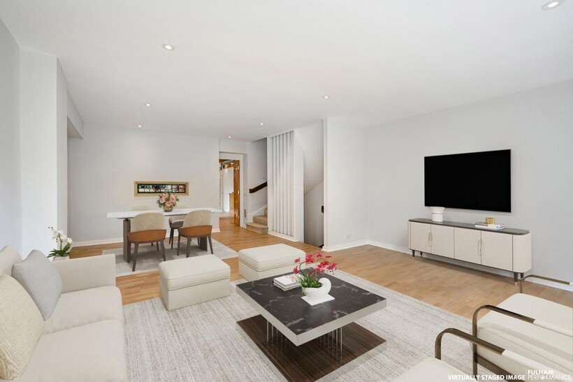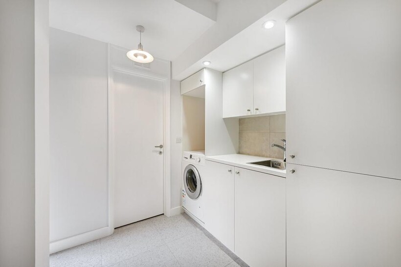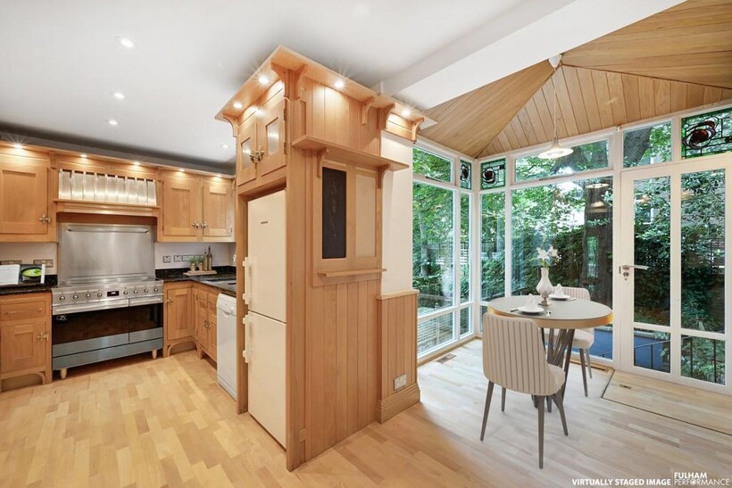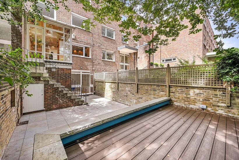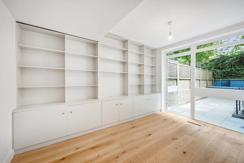 This beautiful, contemporary home boasts light-filled, spacious living, with accommodation arranged over four floors only. The property is immaculately presented throughout, having undergone a recent refurbishment, with neutral decoration and modern fittings creating an incredibly comfortable family home. The house is quietly located on Woodsford Square, a charming development that’s enduringly popular with families due to its community feel, green open space and easy, abundant parking. The impressive reception room spans the first floor and is flooded with natural light via the large west-facing windows which overlook the communal gardens. The kitchen is situated on the same level, with a conservatory style breakfast area from which the private garden can be accessed via doors that lead out onto steps down. The well-thought-out Mark Wilkinson kitchen is fitted with a large, new range cooker and a Liebherr fridge freezer.