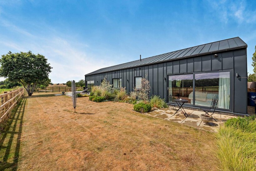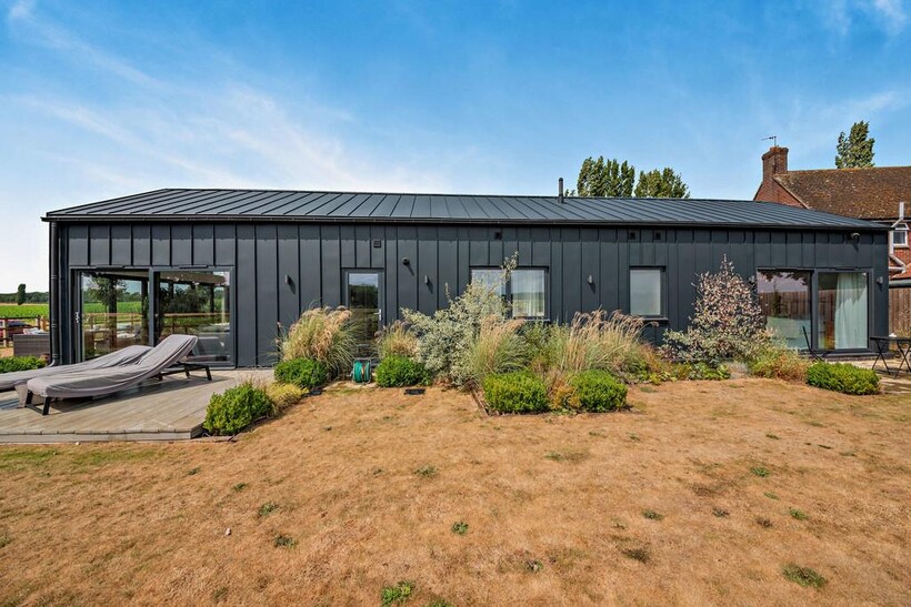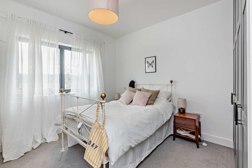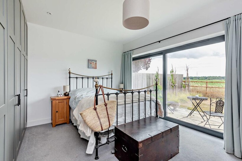 Modern energy efficient barn style house with underfloor heatingMaster bedroom with built in wardrobes, en suite shower room & private patio
