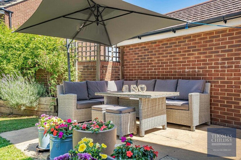 Outside, the house has two parking spaces on the driveway (with an electric charger) and a garage which has direct access to the garden.