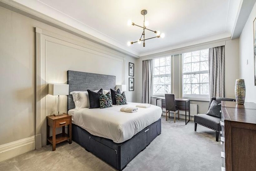 A newly refurbished six bedroom, 5 bathrooms apartment located in a prestigious mansion offering fabulous views over Regents Park. This first floor apartment is set over 2523 Sq ft and benefits from ample storage space and comprises a double volume reception room, dining room, fitted kitchen, five bedrooms, two family size bathrooms and a guest cloakroom.The apartment offers easy access to the famous Lords Cricket Ground, the open spaces of Regent’s Park, along with all the local shops, bars, restaurants located on St John’s Wood High Street.