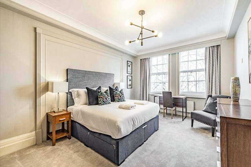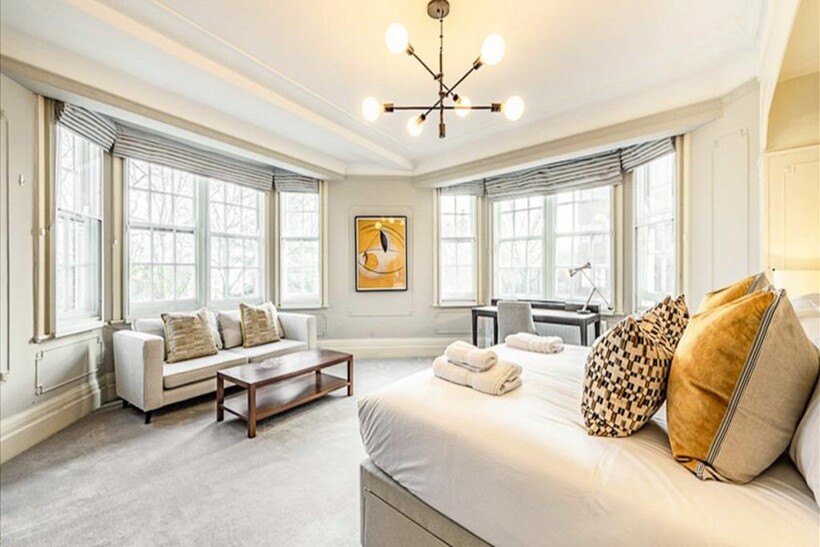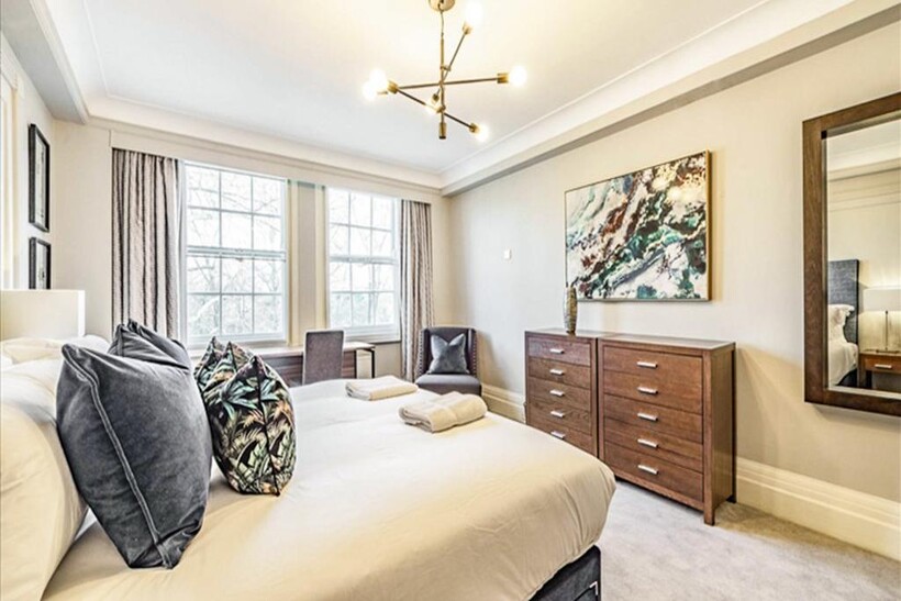 Set within one of St John’s Wood’s most distinguished mansion blocks, this remarkable six-bedroom apartment spans approximately 2,553 sq ft (237.17 sq m) of elegant living space on the second floor of Strathmore Court, a portered building directly opposite Regent’s Park.Designed for both luxury and practicality, the apartment features an impressive double-volume reception room, ideal for entertaining, alongside a formal dining room, six spacious bedrooms, two generous family bathrooms, a guest cloakroom, and a separate fitted kitchen with integrated appliances.