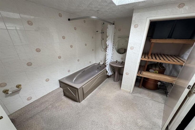 Family Bathroom - Electric shower over bath. Low level w/c. Wash hand basin.